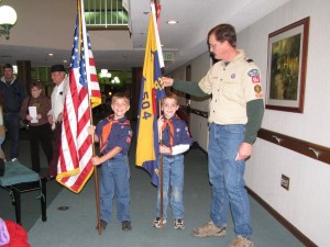 The Cub Scouts had the honor of paying tribute to our veterans last night.  They went to the Harrison Retirement Community in Speedway.  Curtis was able to present our nation’s colors.  I was so proud of him.  Looking at this picture now brings tears to my eyes.  He was so careful with the flag, being sure that our flag did not touch the ground.  Throughout the ceremony he sat quietly and respectfully.  Although not a perfectly orchestrated event, a very moving event.  There is great joy in seeing our boys brought up in the tradition of respecting our nation and its symbols.