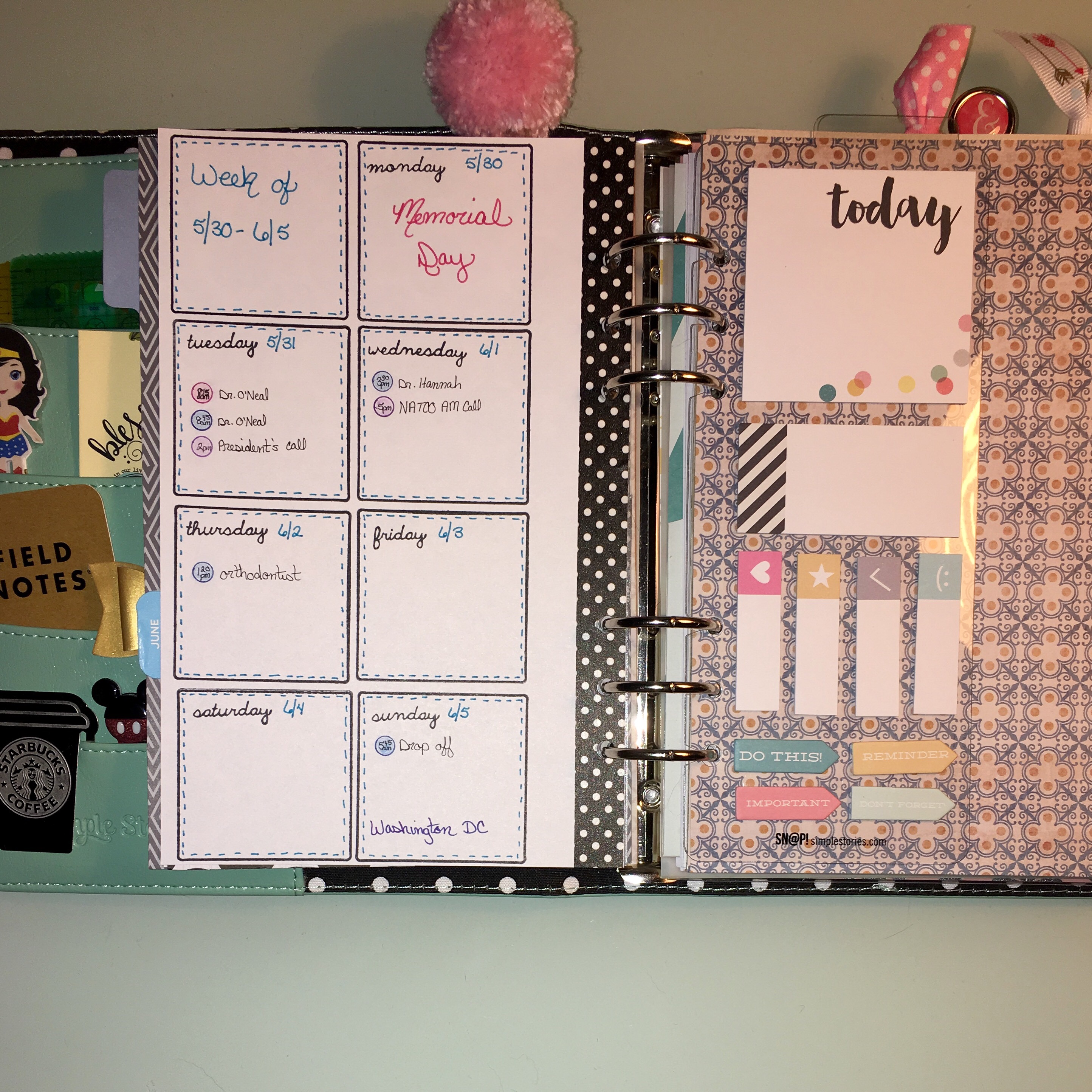 My husband uses an all digital calendar. This is great for work, but not working so well for home. After forgetting an event and constantly asking what the next thing is, I decided I wanted to create a paper calendar that is useful for him. Now, I just need to keep it up to date and encourage him to look at it. Right now, the calendar stays open on the desk in the living room and the layout is simple.