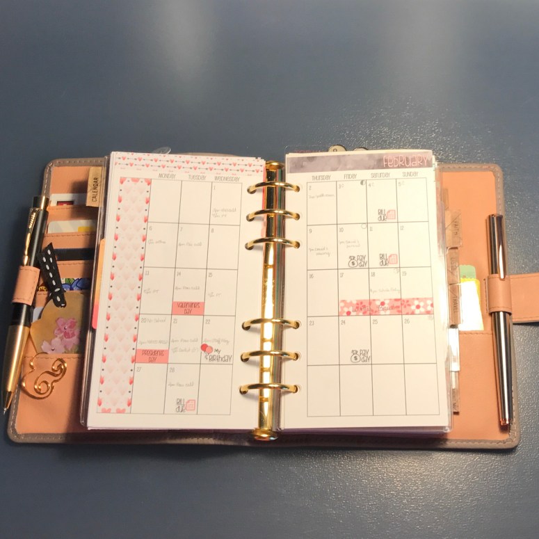 My journey has come to three paths.  Last year I had a different “planner” every 3-4 weeks.  What I learned to hate is duplication!  Duplication is my nemesis.  So, listening to the advice of the brilliant ladies (and gents) in the planner community, have ONE calendar.  Okay, that is common sense too!  Why am I making this so hard!  So I decided that my personal size ring binder would be “Home Base”.  This would house my monthly calendar, references for goals and planning, and has the ability to change as my needs change.  By selecting “Home Base”, I can change planners weekly if I want.  I can use a #2 FoxyFix this week, my Hobonichi next week, and be back in rings the following.  This can be done with little duplication.